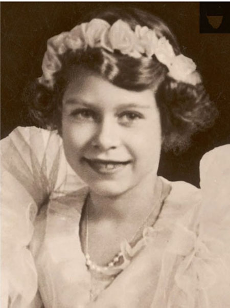 Acima, vemos a Princesa Elizabeth, futura Rainha da Inglaterra, como dama de honra no casamento de Lady May Cambridge em 1931, quando ela tinha 5 anos. Ela estava claramente calma e composta, consciente de sua própria dignidade e do sério papel na vida que lhe foi dado. Com esta abordagem, preparava-se para aceitar a vida de uma nobre Inglesa; assim ela estava preparada para tomar o caminho inesperado de se tornar uma Rainha, que ela foi chamada a trilhar depois que seu tio Edward VIII abdicou e seu pai George VI morreu.