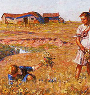 Vivendo na pradaria, longe da cidade, essas mulheres também enfrentam dificuldades, como a mulher da pintura anterior. No entanto, realizam o seu trabalho com uma calma e serenidade que as ajudam a manter a sua feminilidade. Eles não exalam um ar de independência feroz, mas sim um espírito de convívio e amabilidade.