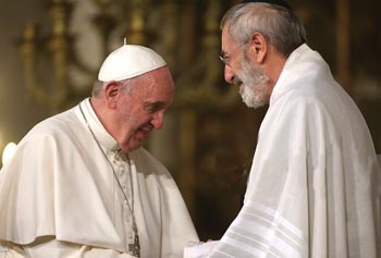 Francisco se inclina submisso diante do rabino-chefe na Sinagoga de Roma, Janeiro de 2016