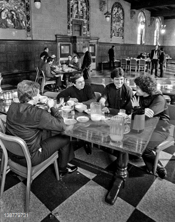 Seminaristas de Boston almoçando na década de 1970, imbuídos do espírito descontraído da nova liturgia