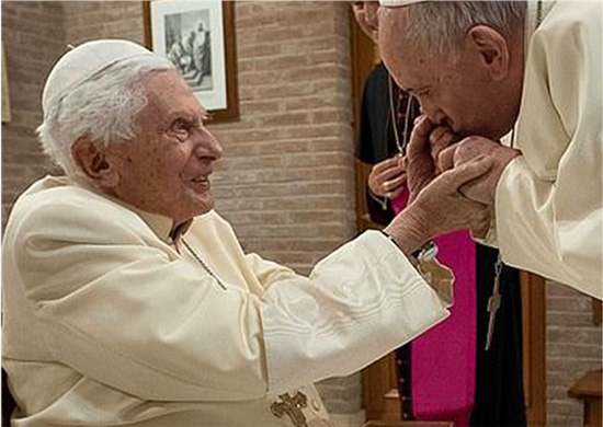 O grande amor com que o Papa Bergoglio beija sua mão mostra também que ambos estão no mesmo caminho. A suposta oposição dos dois, é apenas a velha história do policial bom e do policial mau. Ambos obedecem ao mesmo chefe …