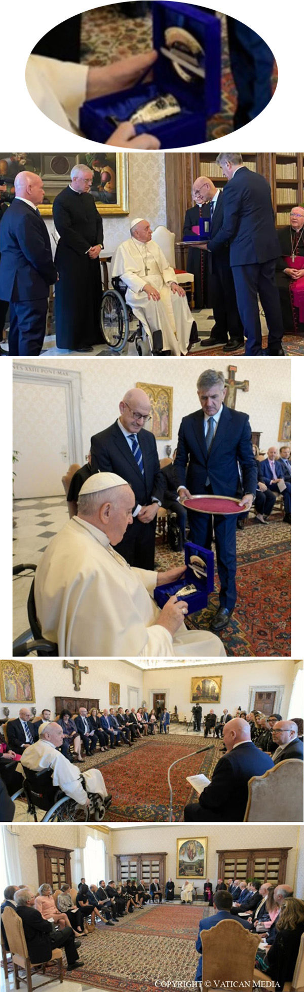 Na foto acima, vemos o CEO da B'nai B'rith International Daniel S. Mariaschin dando ao Papa Bergoglio um cálice de ouro com inscrições e símbolos judaicos. Este foi um prêmio simbólico para agradecer a Francisco por seu constante apoio a esta organização Maçônica Judaica.Isso ocorreu durante uma reunião na Biblioteca Papal, quando Francisco recebeu uma delegação de 27 membros dessa organização em 30 de maio de 2022.