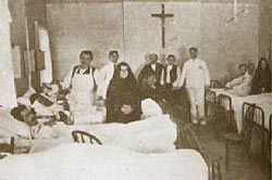 Madre Cabrini com os enfermos no hospital que ela fundou em Columbus, Chicago, 1872