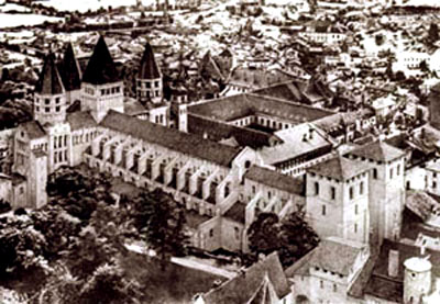 A imensa Abadia de Cluny como era em 1750, antes de ser destruída na Revolução Francesa |