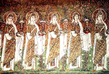 A Procissão das Virgens Mártires nas paredes de Sant'Apollinare Nuovo em Ravenna, Itália