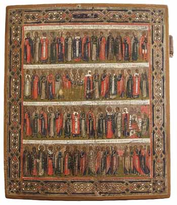 Um cortejo de mártires da Igreja Primitiva decora um livro do Evangelho |