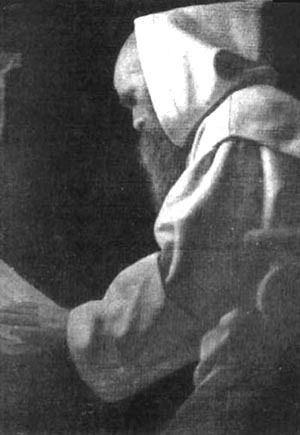 Revestido de um simples e pobre burel, com uma longa barba, esse religioso parece a personificação de todos os elementos que impregnam o ambiente que o rodeia: gravidade extrema, resolução varonil de só viver para o que é profundo, verdadeiro, eterno, nobre simplicidade, espírito de renúncia a tudo quanto é da Terra, pobreza material enfim, iluminada pelos reflexos sobrenaturais da mais alta riqueza espiritual.