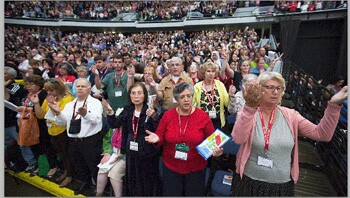 É triste informar, mas agora com o patrocínio do supostamente “conservador” Arcebispo de Los Angeles José Horácio Gomez, membro do Opus Dei, nada mudou e algumas coisas pioraram. Como em 2015, também neste ano de 2016 uma criatividade desenfreada em liturgias foi oferecida aos cerca de 40.000 participantes: estas incluem Liturgias da Igreja na Periferia, Cultura Negra e o Cuidado da Terra, bem como uma Missa de Compaixão e a Missa Pop Rock habitual da Juventude.